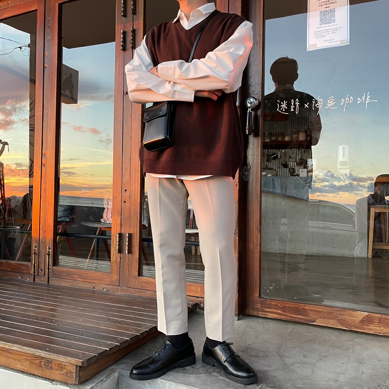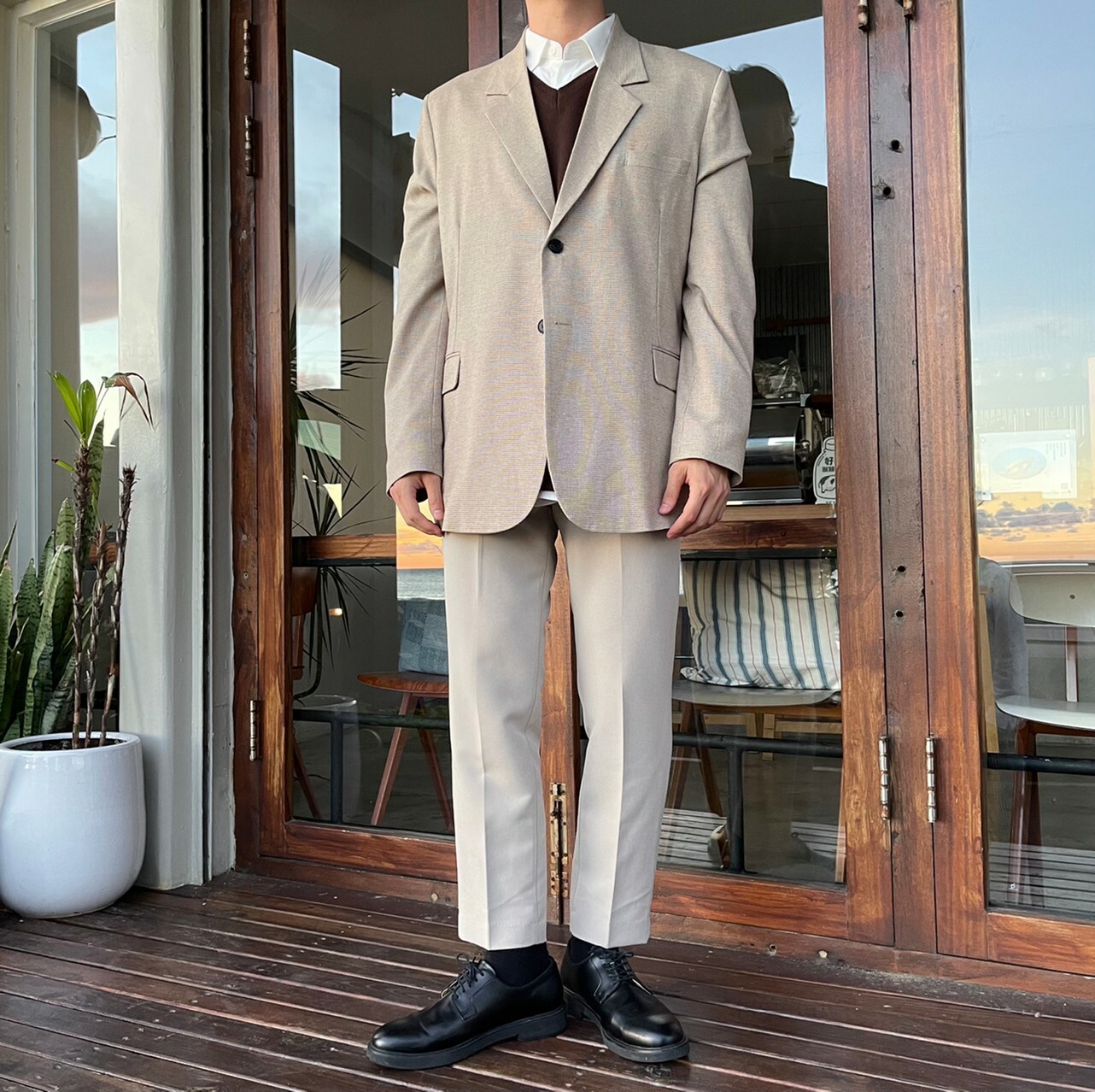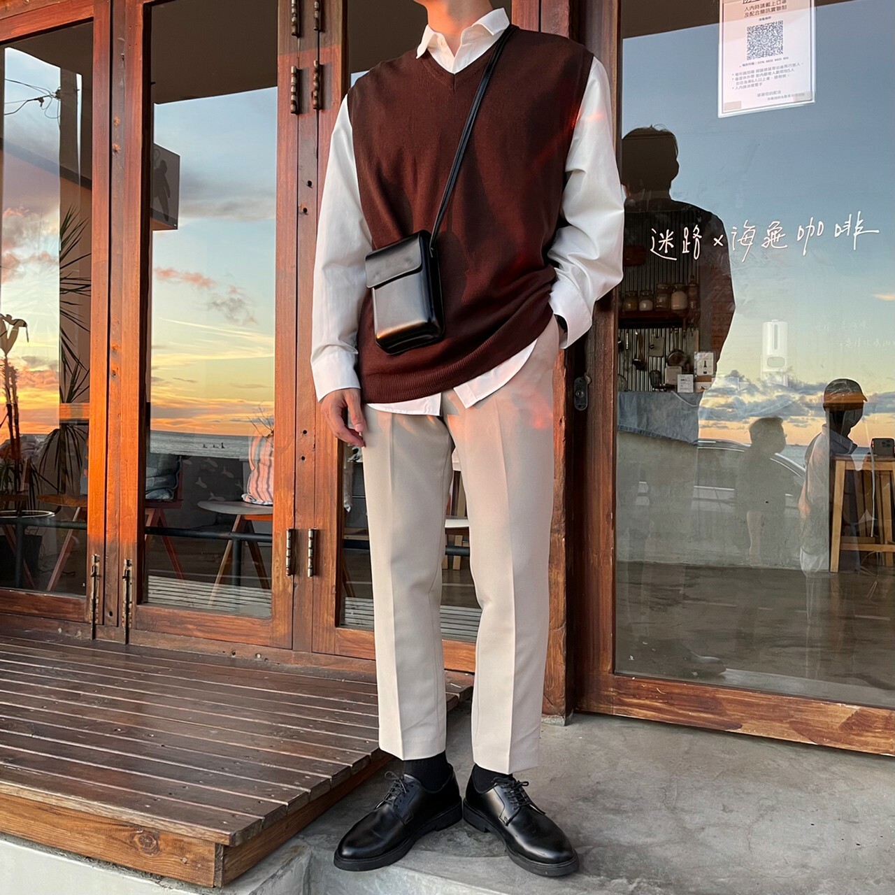 176cm 66kg / 29w / S( 卡其-著咖啡色背心者)