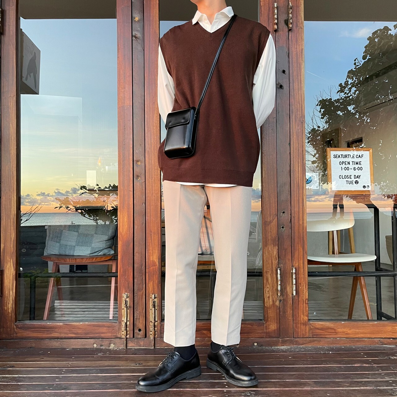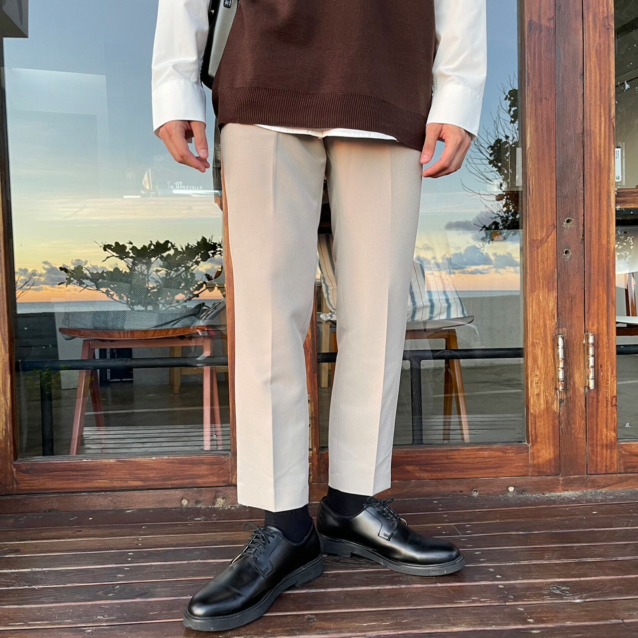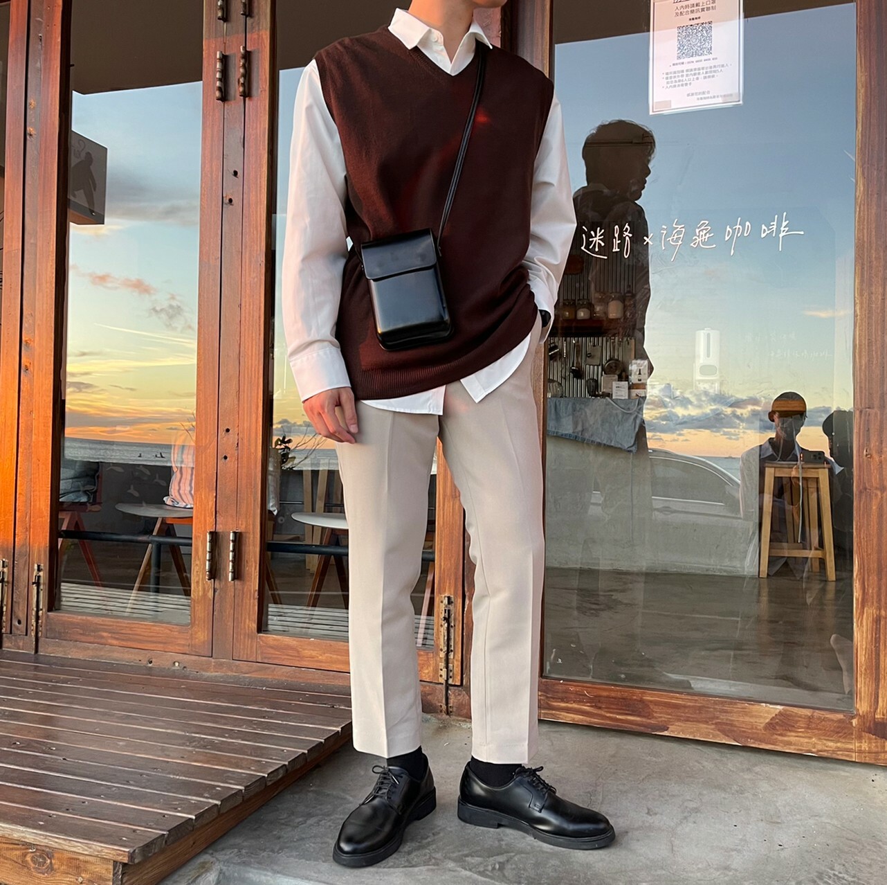 176cm 66kg / 29w / S( 卡其-著咖啡色背心者)