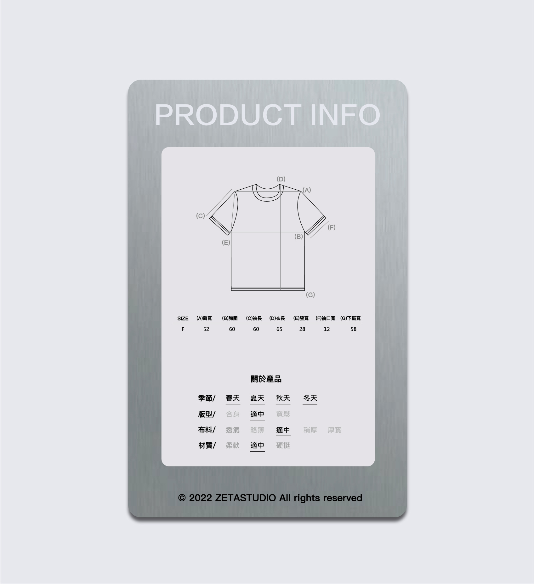 174cm 60kg/肩寬44cm/F 著白