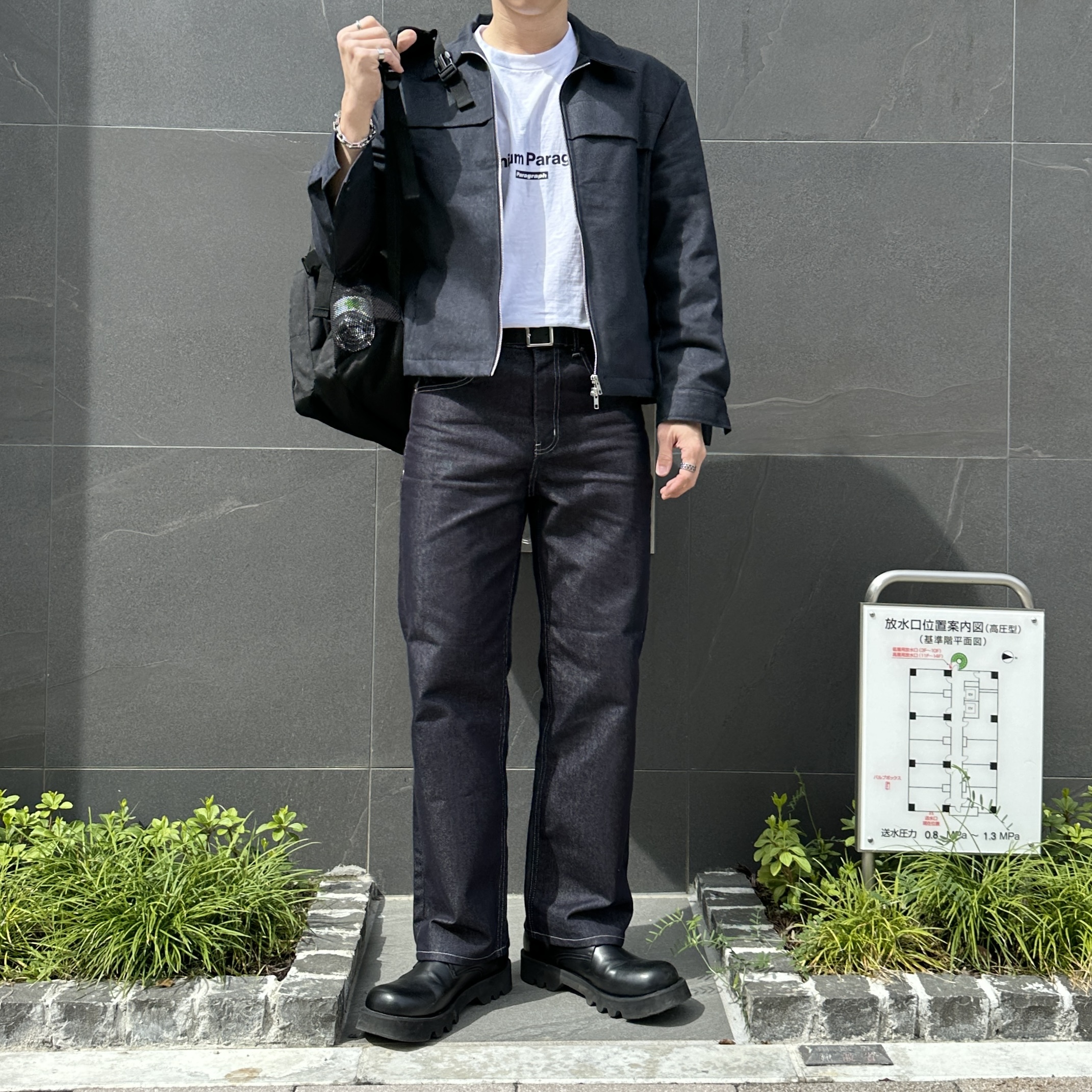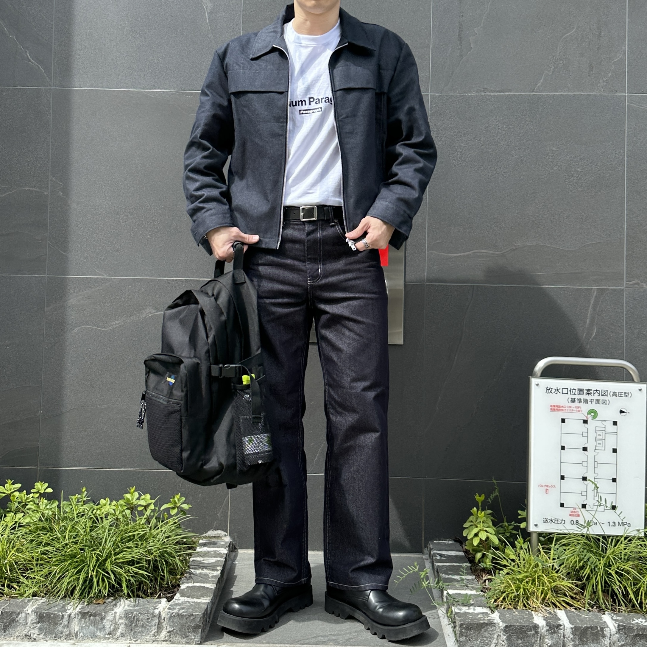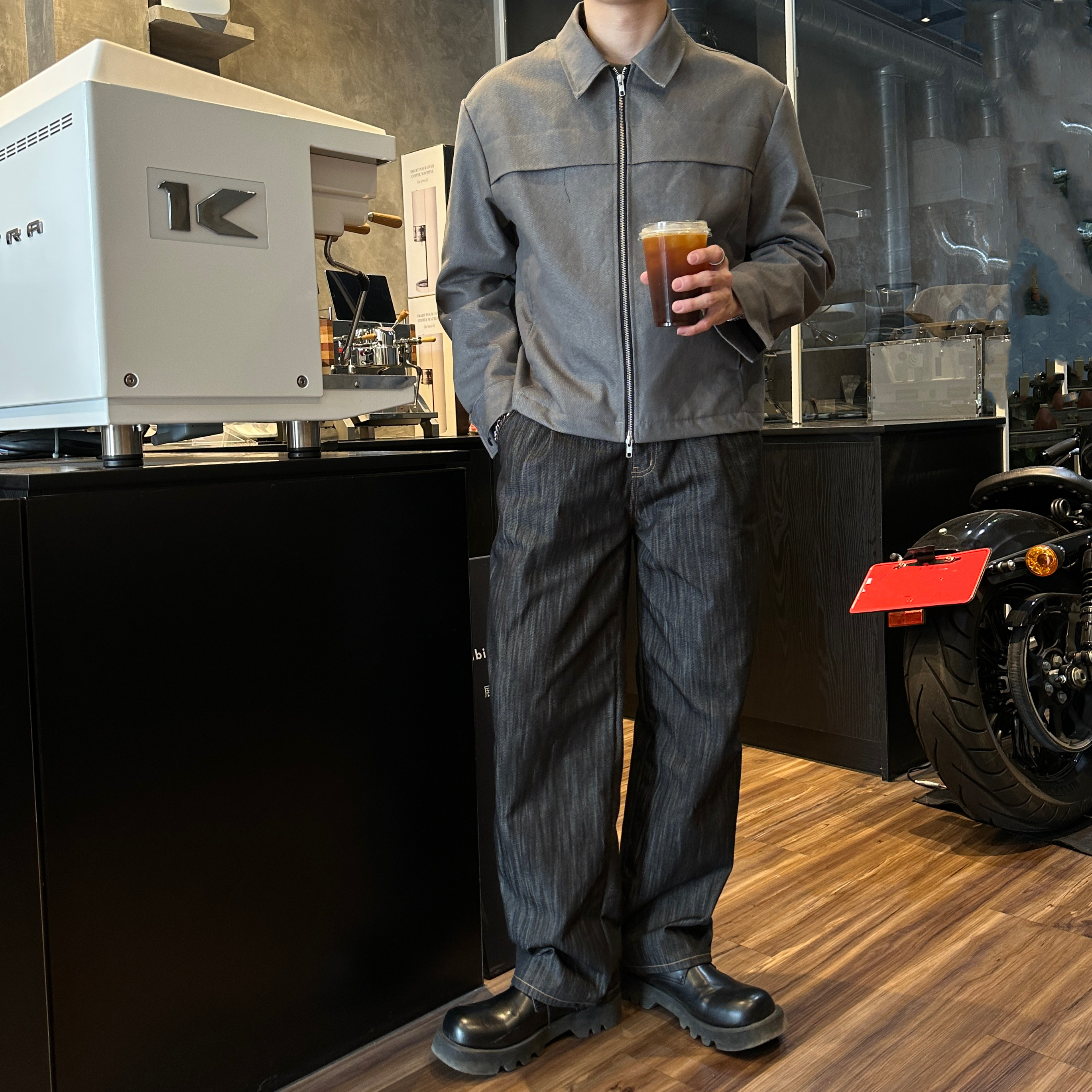 176cm 74kg/肩寬48cm/F 著灰.藍