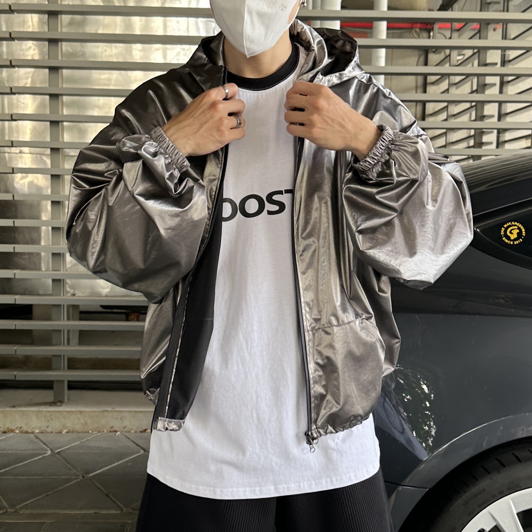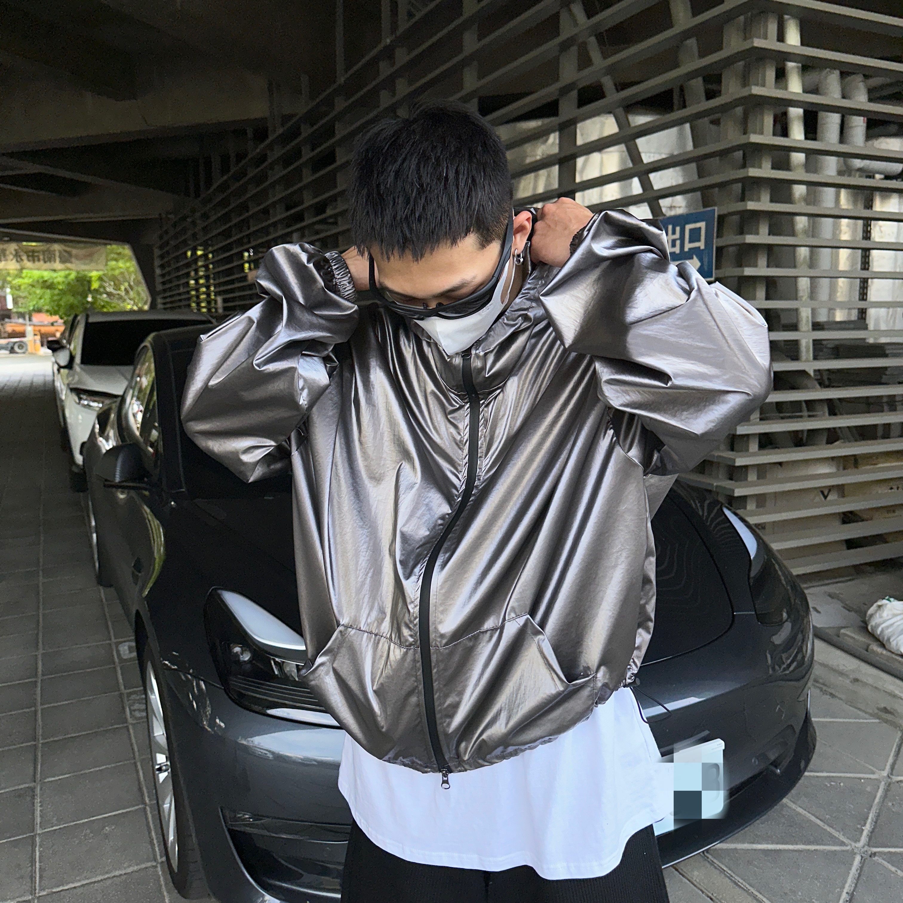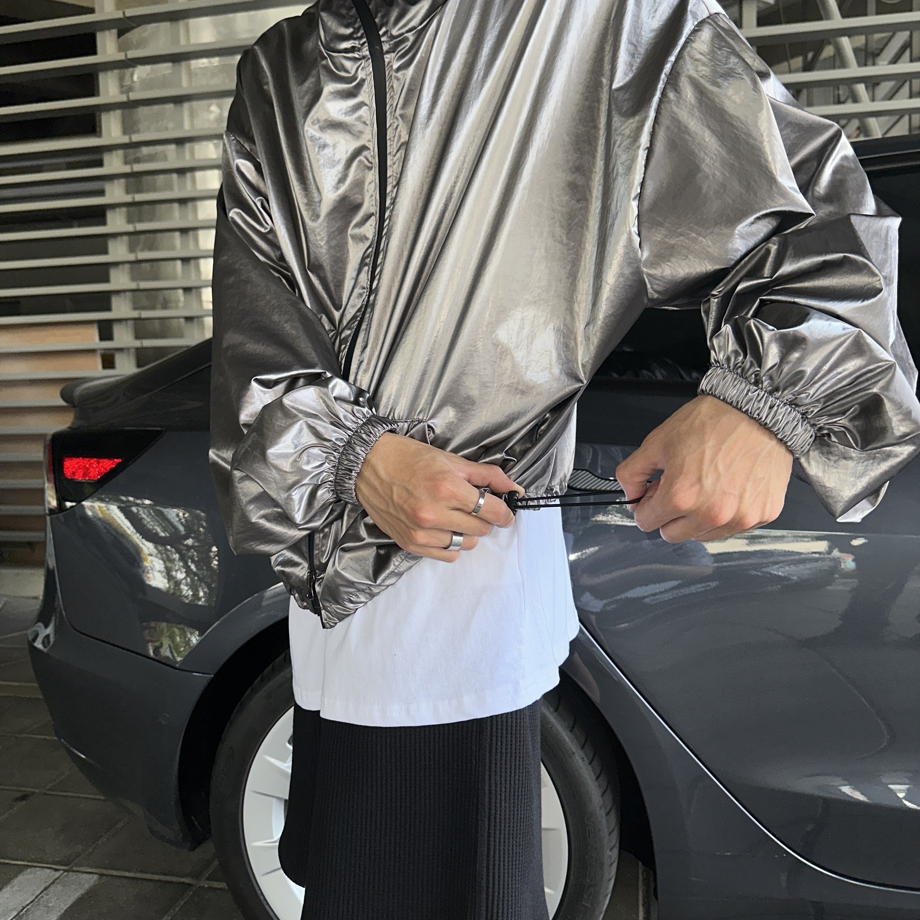176cm 74kg/肩寬48cm/F 銀(著黑色內搭)