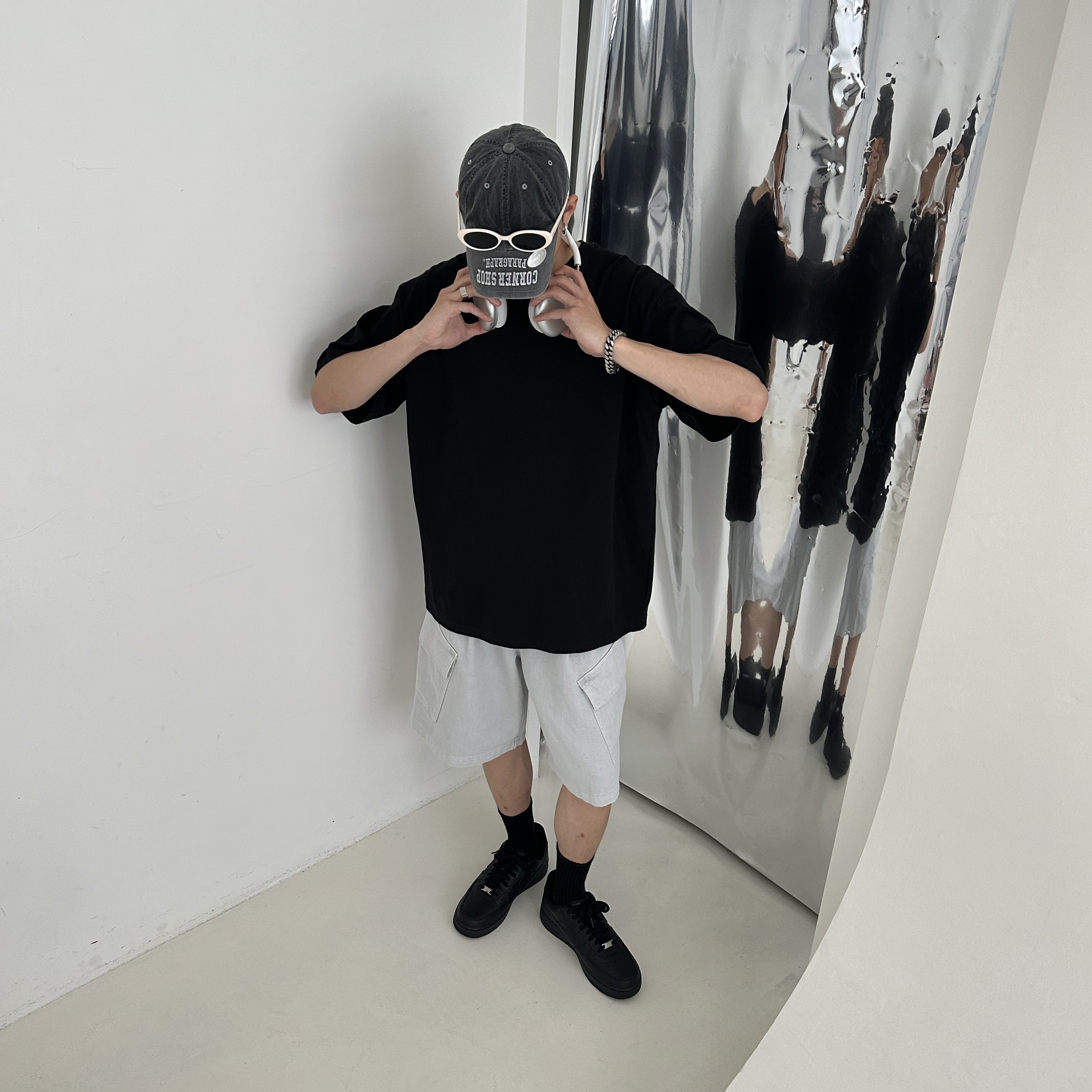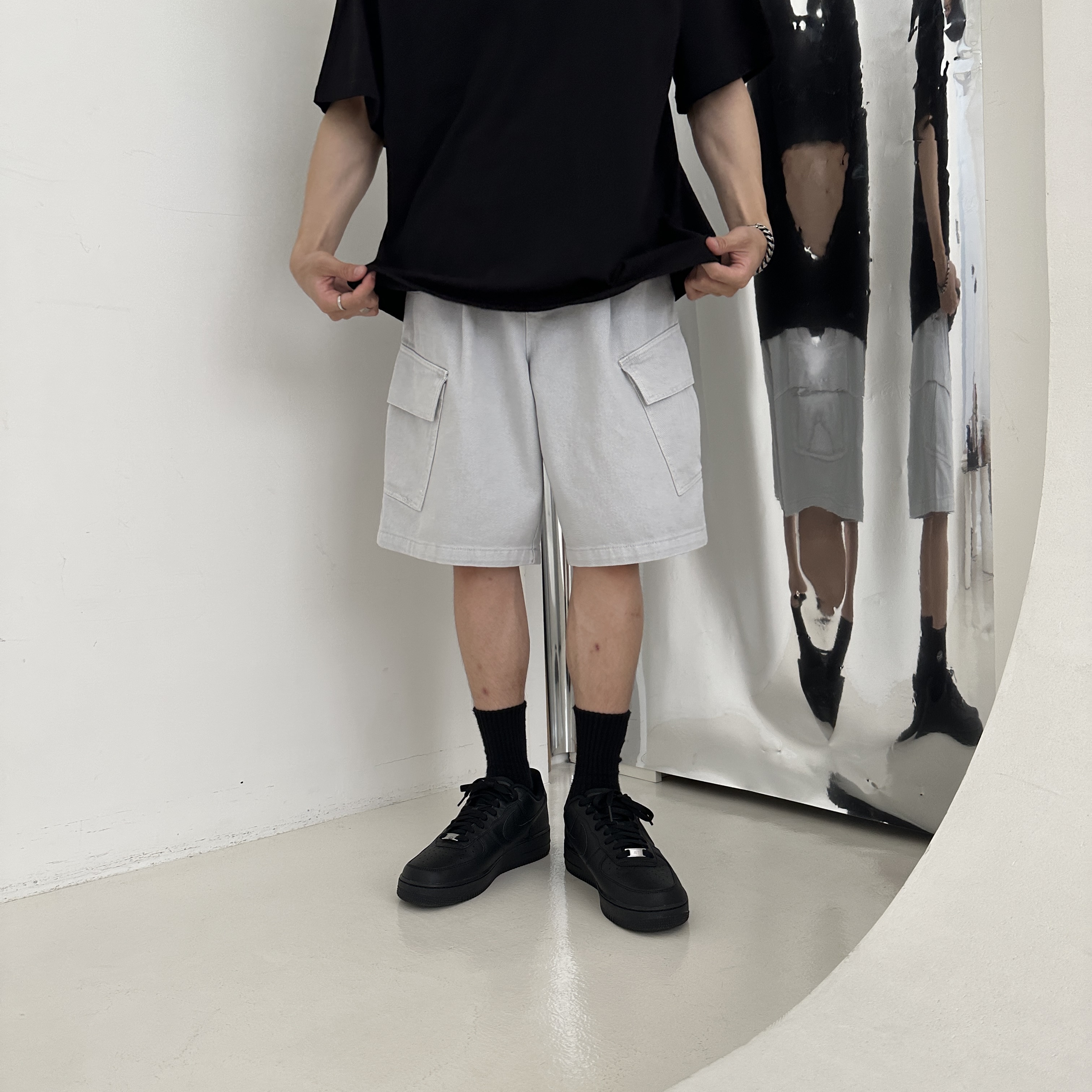 174cm 60kg/29w/S 著黑(白上衣)、灰(藍上衣