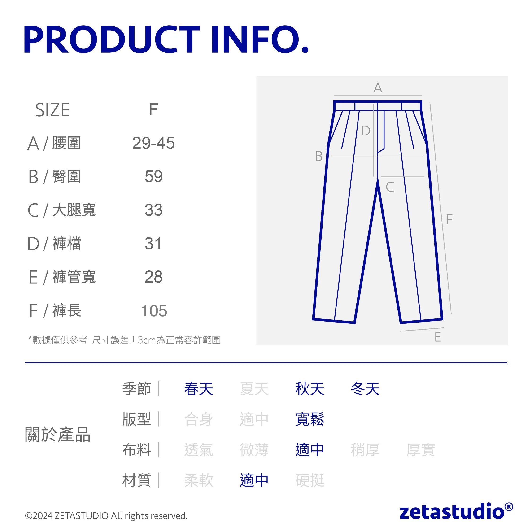 -隱藏抽繩鬆緊腰身型容納度高、褲管調節釦造型隨意調整