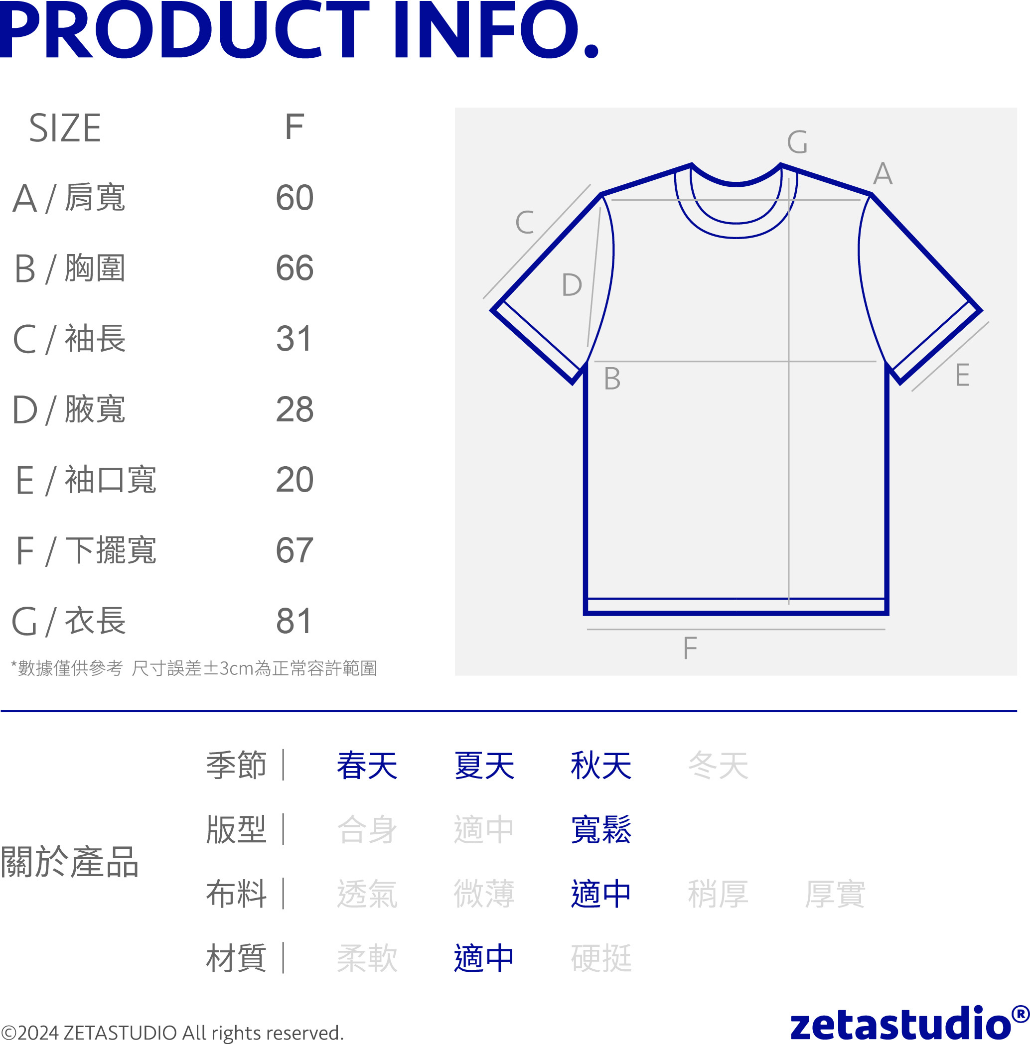 174cm 68kg/肩寬49cm/著藍色