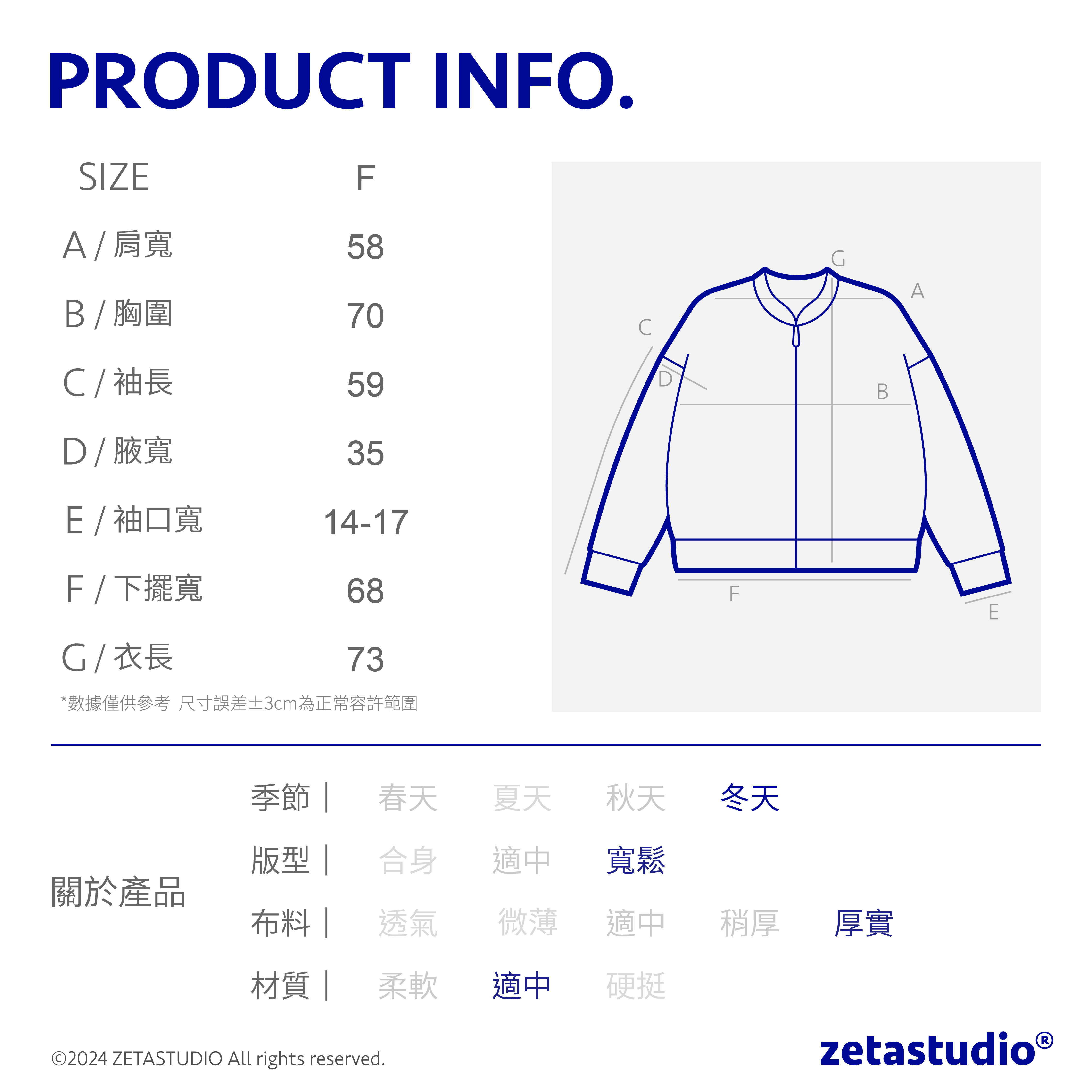 174cm 68 kg/肩寬49cm/F 著木炭色