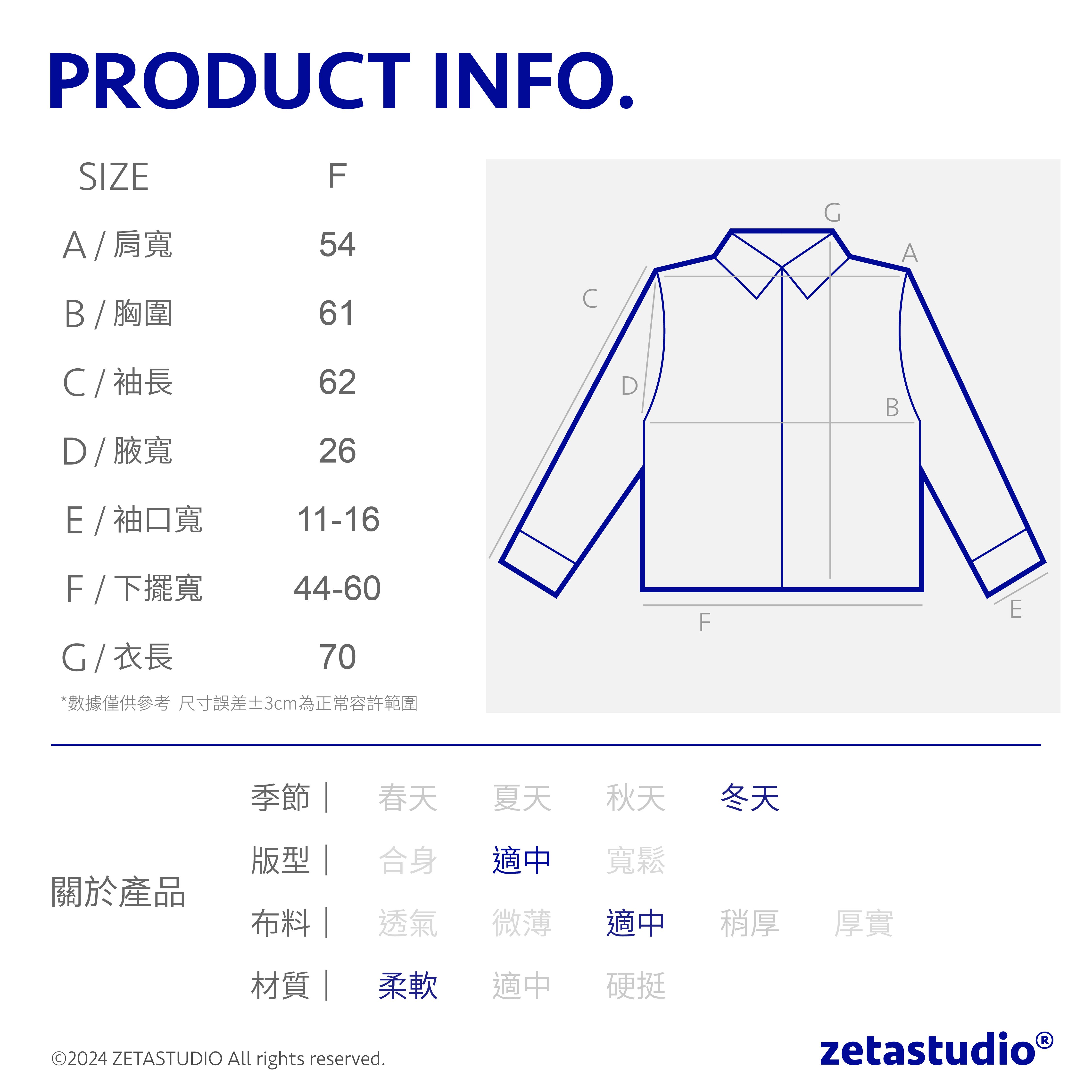 174cm 63kg/肩寬47cm/ F 深藍色
