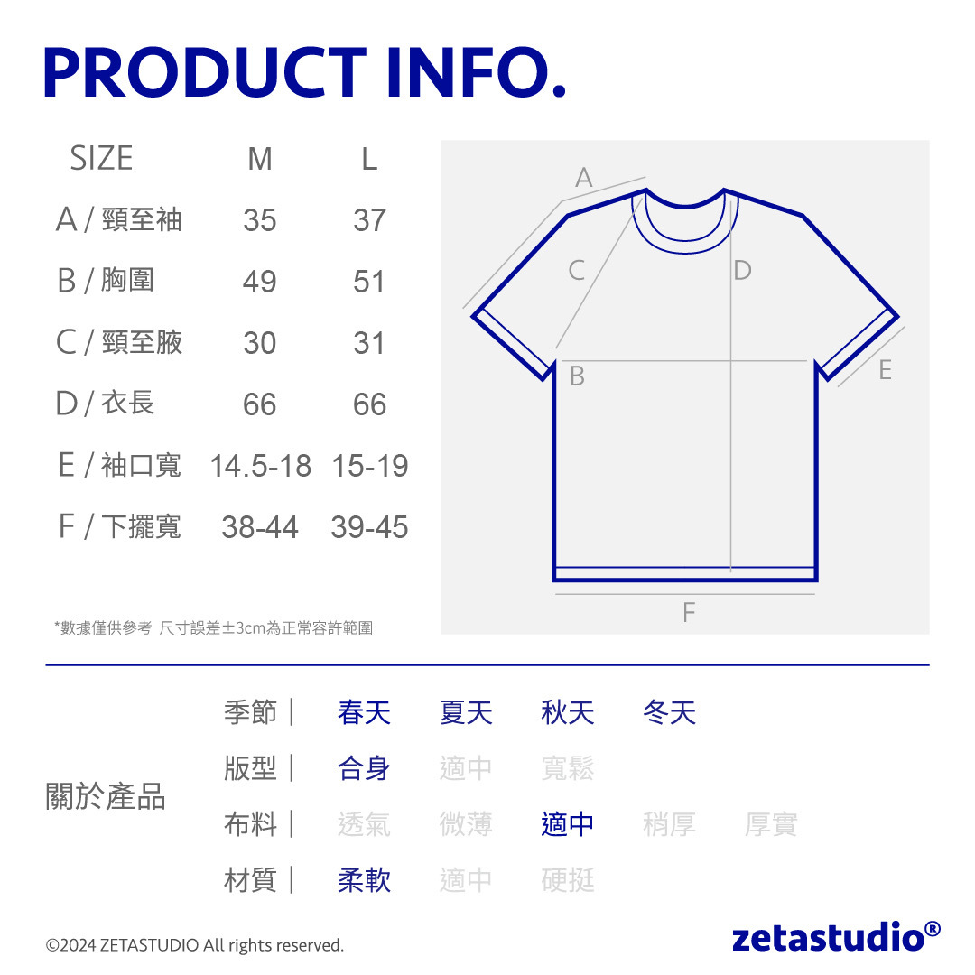 174cm 68 kg/肩寬 49cm/ M